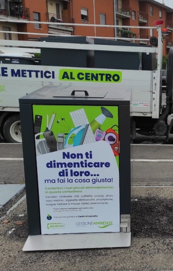 Inoltre, proprio per supportare i cittadini, Gestione Ambiente ha implementato un servizio di raccolta supplementare per i piccoli rifiuti elettrici ed elettronici, quelli in versione small, i cosiddetti R4. Dallo scorso ottobre, nei Comuni che hanno aderito al progetto, si possono trovare nuovi contenitori dedicati alla raccolta degli R4 (esempio: sigarette elettroniche, smartwatch, telecomandi, chiavette USB, cellulari, tablet, rasoi elettrici, orologi, sveglie, tastiere e mouse, asciugacapelli). I contenitori sono stati posizionati in aree ad alta frequentazione, in prossimità di scuole, supermercati e uffici comunali (la posizione dei contenitori è pubblicata sul sito www.gestioneambiente.net e sull’App Junker nell’apposita sezione mappe). Il nuovo servizio consente di conferire i piccoli RAEE liberamente, senza vincoli di orario e senza la necessità di recarsi nei Centri di raccolta. In più, i contenitori sono dotati di sensori di riempimento che permettono di ottimizzare il lavoro degli operatori e i percorsi di raccolta contribuendo a contenere le emissioni di CO2.